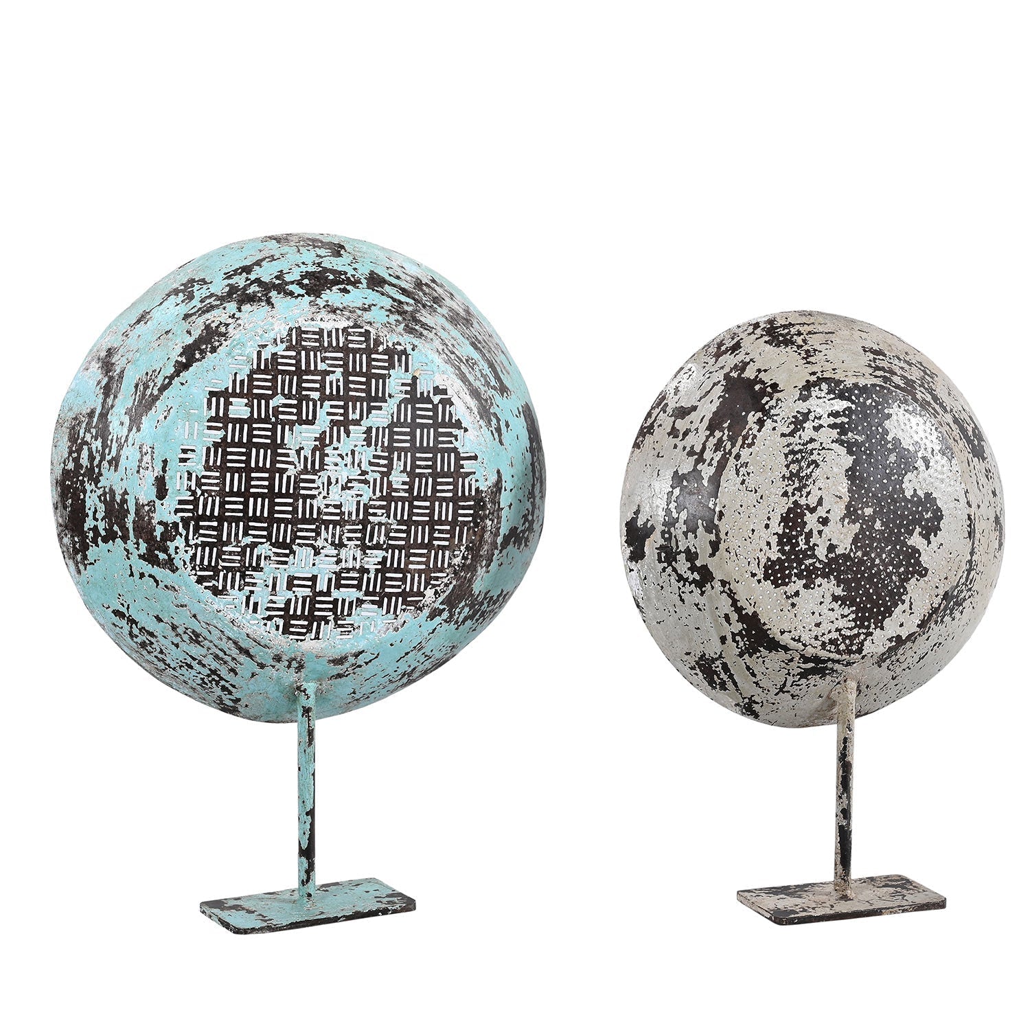 Farmhouse Style Distressed Blue Vinatge Metal Seive On Display Stand